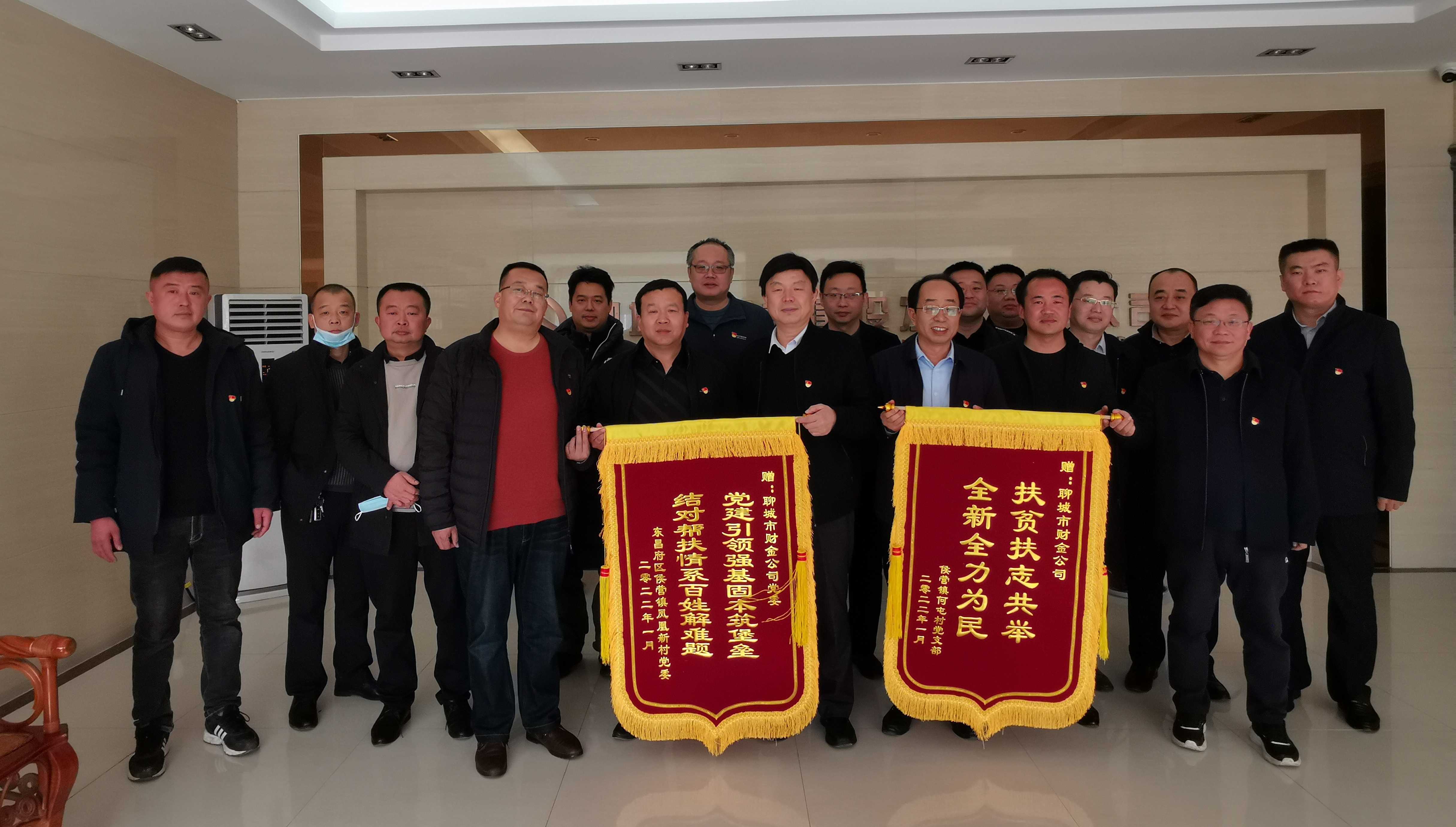 1月25日上午,東昌府區(qū)侯營鎮(zhèn)鳳凰新村黨委一行來到市財金公司,將兩面鮮紅的錦旗送到公司黨委書記、董事長張繼堯手中,對財金公司派駐第一書記助力鄉(xiāng)村振興、開展新春送溫暖走訪慰問活動表示感謝。雙方召開座談會,就“雙聯(lián)共建”工作進行溝通交流,會議由公司黨委副書記、董事、總經(jīng)理于雪格主持,公司班子成員及黨員代表參加會議。
