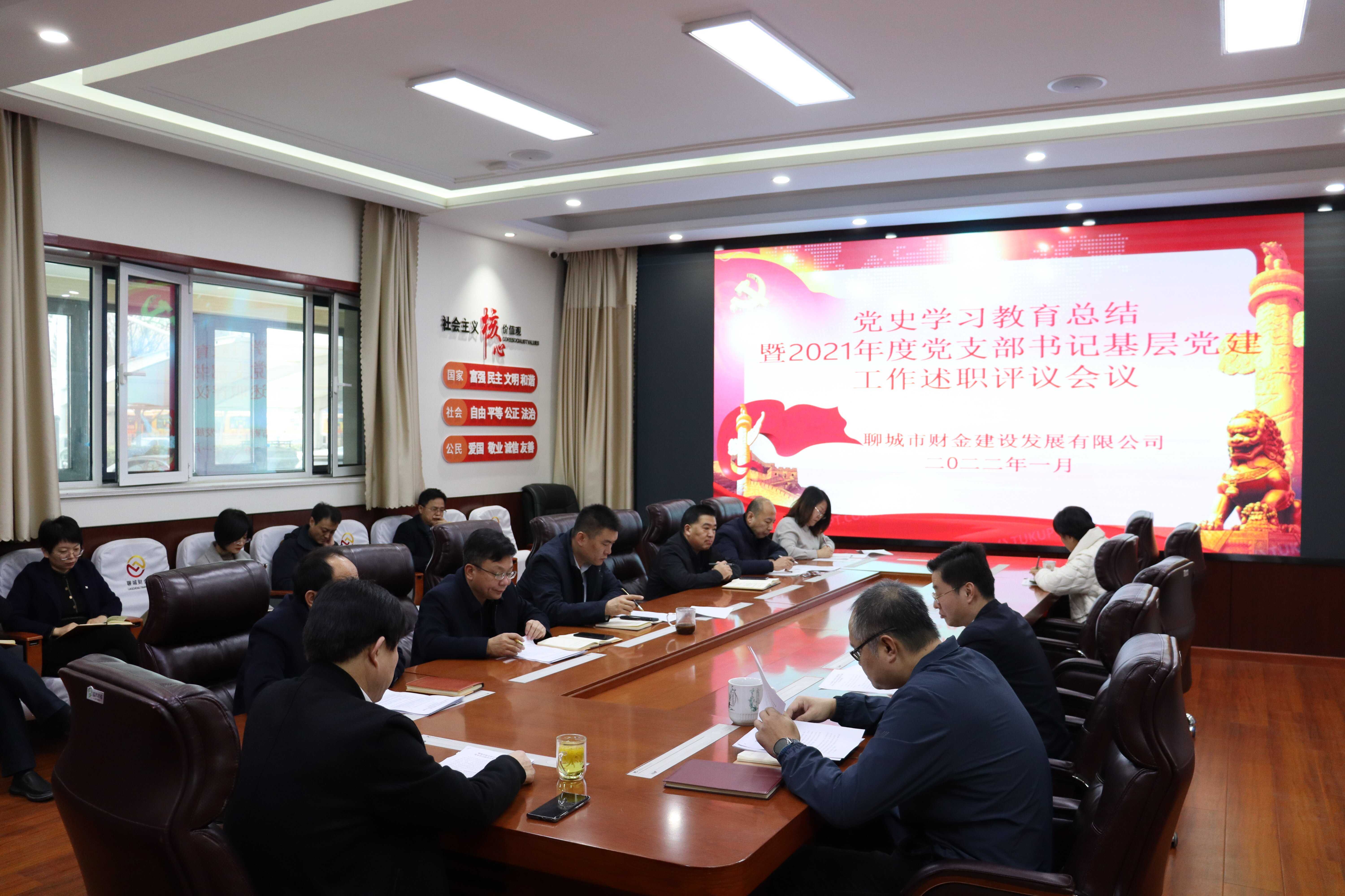 1月26日,市財金公司召開黨史學習教育總結(jié)暨2021年度黨支部書記基層黨建工作述職評議會議。黨委副書記、董事、總經(jīng)理于雪格主持會議,領(lǐng)導班子成員、各黨支部書記、各部門及子公司負責人參加會議。