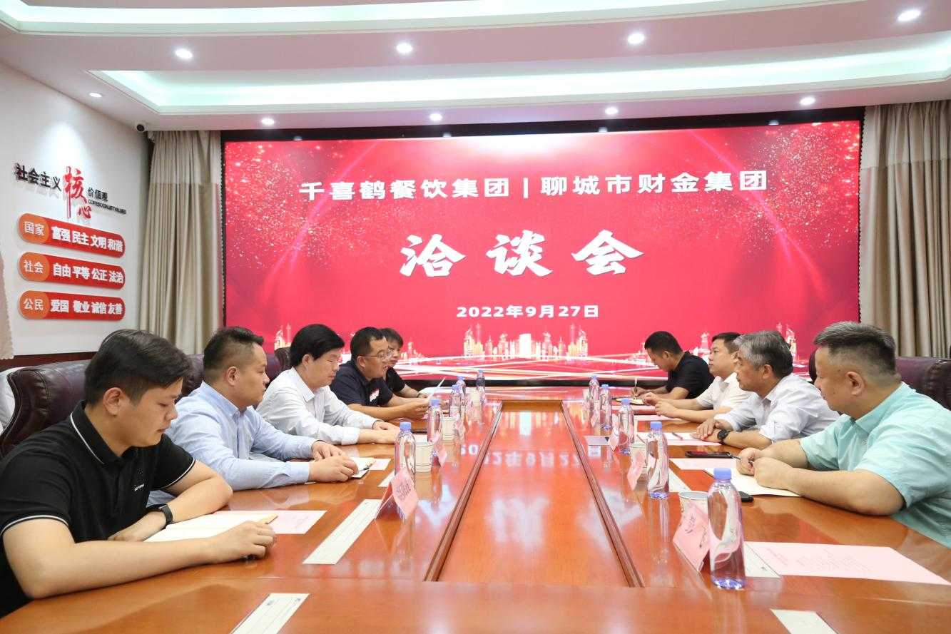 9月27日下午,千喜鶴餐飲集團(tuán)總裁李中明、華東區(qū)總裁魏武等人一行受邀來到市財(cái)金集團(tuán),雙方召開洽談會(huì),共同就聊城市餐飲服務(wù)項(xiàng)目合作事宜進(jìn)行交流對(duì)接。市財(cái)金集團(tuán)黨委書記、董事長張繼堯,董事會(huì)秘書、總經(jīng)理助理、財(cái)金城市發(fā)展公司董事長王躍及有關(guān)負(fù)責(zé)人出席會(huì)議。